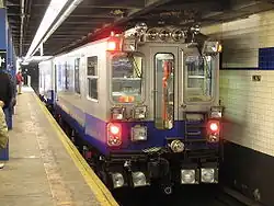 En date de janvier 2012, 6 293 voitures figurent sur la liste de la New York City Transit Authority[2]. Bien que la consolidation de trois anciens réseaux concurrents, l'IRT, la BMT et l'IND pour former un unique réseau métropolitain ait eu lieu en 1940, le matériel roulant du métro de New York est toujours classé en deux « divisions » qui correspondant aux réseaux historiques, qui avaient tous deux des caractéristiques propres en termes de spécificités techniques (écartement des rails, type de trains) Ainsi, les anciens métros de l'IRT portent aujourd'hui le nom de Division A[3] et correspondent aux lignes numérotées (exception faite de la S 42nd Street Shuttle). Ceux de la BMT et de l'IND correspondent quant à eux à la Division B[4] qui regroupe les lignes lettrées. Un métro typique comporte huit à onze voitures, bien que certaines lignes courtes, baptisées navettes (shuttles) puissent n'en comporter que deux. La longueur d'un métro est donc variable, allant de 46 à 183 mètres.