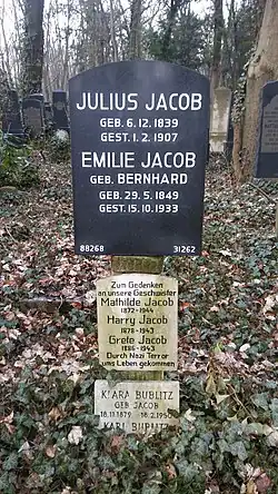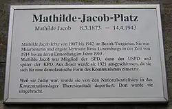 - 1 2 Silvija Kavčič et Charlotte Kreutzmueller (traductrice en anglais), « Mathilde Mathel Jacob », Stolpersteine in Berlin, Koordinierungsstelle Stolpersteine Berlin (consulté le )