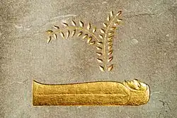 - une branche d'acacia sortant d'un sarcophage, représentant « la Vie qui sort de la Mort » dans l'Égypte antique et pour la franc-maçonnerie (Légende d'Hiram).