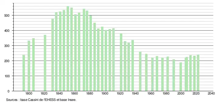 - ↑ Fiches Insee - Populations de référence de la commune pour les années 2006, 2007, 2008, 2009, 2010, 2011, 2012, 2013, 2014, 2015, 2016, 2017, 2018, 2019, 2020, 2021 et 2022.