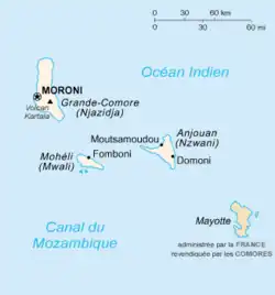 C'est l'île la plus au sud de l'archipel des Comores, en arabe « Jouzour al qamar » (جزرالقمر), c'est-à-dire les « îles de la Lune » — cette étymologie populaire est cependant apocryphe, ce dernier nom venant plutôt de l'ancien nom arabe de Madagascar, « Ķ(u)mr’ » (ce qui en ferait les « îles malgaches »)[35],[36].