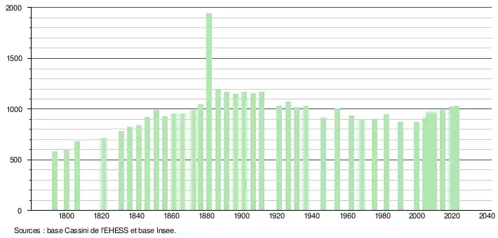 - ↑ Fiches Insee - Populations de référence de la commune pour les années 2006, 2007, 2008, 2009, 2010, 2011, 2012, 2013, 2014, 2015, 2016, 2017, 2018, 2019, 2020, 2021 et 2022.