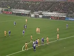 Mbark Boussoufa s'apprêtant à donner un coup franc face aux Girondins de Bordeaux en 2008.
