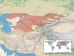 Cette espèce se rencontre dans le sud de la Russie, en Iran, au Kazakhstan, en Ouzbékistan, au Turkménistan, au Tadjikistan, au Kirghizistan et dans l'ouest de la Chine[1].