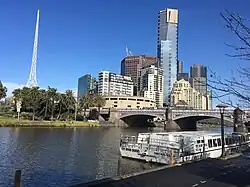 Melbourne (/mɛlbuʁn/[a] ; en anglais : /ˈmɛlbn̩/[b] ) est la capitale de l'État du Victoria, en Australie. Deuxième agglomération urbaine du pays après Sydney, le « Grand Melbourne » (Greater Melbourne) compte 5,2 millions d'habitants au recensement de 2023. La ville est située sur la baie de Port Phillip, laquelle ouvre sur le détroit de Bass. Ses habitants sont les Melbourniens (Melburnians en anglais)[c]. Melbourne est un important centre commercial, industriel et culturel. La ville est souvent qualifiée de capitale « sportive et culturelle » de l'Australie[2], car elle abrite de nombreuses manifestations et institutions culturelles et sportives parmi les plus importantes du pays.