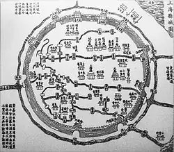 Carte de Shanghai de 1553. On a retrouvé en 1920 dans les soubassements de la muraille construite en 1550 une statue portant le nom du héros de la légende, et comme nom de famille Wan (= Dix Mille). Cette découverte est à mettre en relation avec certaines variantes de la légende selon lesquelles les époux sont des êtres fantastiques, présents sur terre pour sauver dix mille êtres humains[4].