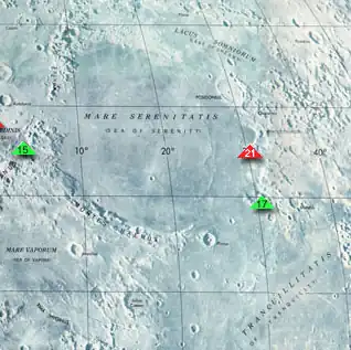 - ↑ (en) Michael T. Kitt, The Moon. An Observing Guide for Backyard Telescopes, Kalmbach Books, , p. 47.