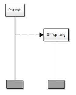 - Création d'instance: une ligne horizontale pointillée jusqu'à la nouvelle instance.