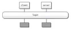 - Flot de contrôle: flèche horizontale avec le préfixe 'call', flèche en pointillée pour le retour, symbole de suspension ou d'appel de méthode entre les deux.