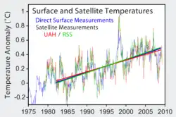 - (en) Cet article est partiellement ou en totalité issu de l’article de Wikipédia en anglais intitulé « Satellite temperature measurements » (voir la liste des auteurs).