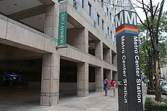 Metro Center niveau-2, qui dispose d'un quai central, est desservie alternativement par les rames qui circulent sur la ligne bleue, la ligne orange et la ligne argent[2]. Les terminus sont spécifiques à chaque lignes[2].