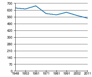 | 650 | 641 | 675 | 593 | 582 | 607 | 575[2] | 545[1] |