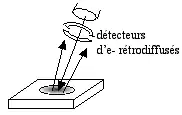 Ces électrons récupérés ont donc une énergie relativement élevée, allant jusqu’à 30 keV, énergie beaucoup plus importante que celle des électrons secondaires. Ils peuvent être émis à une plus grande profondeur dans l’échantillon. La résolution atteinte avec les électrons rétrodiffusés sera donc relativement faible, de l’ordre du micromètre ou du dixième de micromètre.