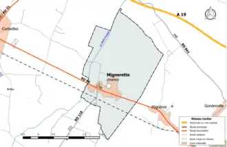 Au , Mignerette est catégorisée commune rurale à habitat dispersé, selon la nouvelle grille communale de densité à sept niveaux définie par l'Insee en 2022[20]. Elle est située hors unité urbaine[21]. Par ailleurs la commune fait partie de l'aire d'attraction de Montargis, dont elle est une commune de la couronne[Note 2],[21]. Cette aire, qui regroupe 33 communes, est catégorisée dans les aires de 50 000 à moins de 200 000 habitants[22],[23].