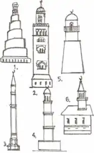 Le minaret est bien antérieur à l'islam[2], utilisé notamment au Proche Orient et en Mésopotamie, alors appelé ziggourat, puis dans les églises syriaques. Il n'a pas été préconisé par Mahomet et les premiers utilisés dans les mosquées sont apparus dans le premier siècle de l'Hégire[3].