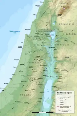Pendant le ministère de Jésus, le tétrarque régnant sur la Galilée et la Pérée lors de cette période était Hérode Antipas, qui obtint la position sur la division des territoires suivant la mort de Hérode Ier le Grand en 4 av. J.-C.[30].