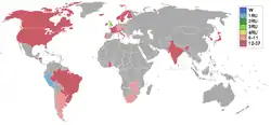 | Débuts | Argentine, Fédération de Rhodésie et du Nyassaland, Ghana, Gibraltar, Hawaii, Hong Kong, Inde, Jamaïque, Jordanie, Corée, Paraguay, Pérou, Portugal, Porto Rico, Uruguay | |||||||