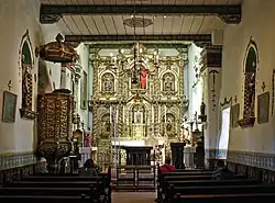 Pour construire une plus grande église, les moines font appel à Isídro Aguilár de Culiacán[14]. La nef est coiffée de six petites coupoles en pierre (bovedas), comme le voulait le père Aguilar, ce qui la distingue des autres églises missionnaires construites dans la région. Le chantier de la grande église de pierre commence le . Son plan a la forme d’une croix latine longue de 55 mètres sur 12 mètres de large et 15 mètres de hauteur. Un clocher de 37 mètres de haut est ajouté à côté de l’entrée principale[15]. Selon la légende locale, cette tour pouvait être aperçue à 16 km et ses cloches pouvaient être entendues à une plus grande distance encore[16]. Les murs en grès reposaient sur des fondations profondes de 2,1 mètres. Le chantier nécessita la participation des Amérindiens. Les pierres étaient acheminées depuis les ravins et le lit des cours d’eau jusqu’à 10 km de distance et transportées dans des charrettes tirées par des bœufs. Le mortier fut fabriqué à partir de calcaire réduit en poudre. Le , un séisme à San Diego provoqua des fissures dans l’édifice nécessitant des réparations[17]. L’église fut achevée en 1806 et bénie par le Frère Estévan Tapís le .