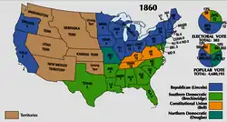 Lors de l'élection présidentielle américaine de 1860, Abraham Lincoln obtient seulement 10 % des voix du Missouri, alors que 71 % vont en faveur de John Bell ou Stephen A. Douglas, tous deux souhaitant maintenir le statu quo. Douglas remporte finalement de peu les votes du Missouri contre Bell - un des deux seuls États remportés par Douglas, l'autre étant le New Jersey - et les 19 % restants allant au démocrate sudiste John C. Breckinridge.