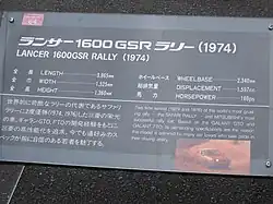 Descriptif de la voiture, au Passenger Car Engineering Center Museum de Mitsubishi à Okazaki-city, Aichi (Japon).
