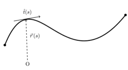 Pour un polymère de longueur maximum , paramétrons la ligne moyenne de la macromolécule par . Soit le vecteur tangent unitaire à la chaîne au point , et le vecteur position le long de la chaîne, comme sur le schéma ci-contre. Comme , la distance entre les deux extrémités de la macromolécule est