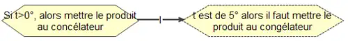 - Lien P : le lien de Précédence associe une connaissance à une autre qui la suit dans une séquence temporelle de procédures ou de règle de décision (principes). Le lien de précédence est une relation transitive.