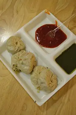 Le momo (tibétain : མོག་མོག་, Wylie : mog mog) est un ravioli tibétain, cuit à la vapeur, ou plus rarement bouilli, farci de viande ou de légumes et accompagné d'une sauce piquante. Il est devenu mets traditionnel également au Népal et au Bengale-Occidental (particulièrement à Darjeeling)[1]. Le momo est très prisé en Asie du Sud et se trouve dans nombre de restaurants et d'étals de rue[2].