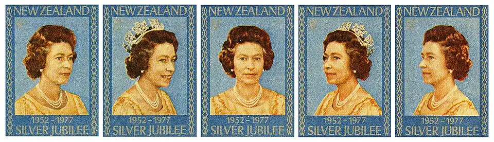 - ↑ (en) « Queen Elizabeth II 1977 », sur collectables.nzpost.co.nz (consulté le ).