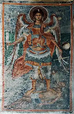 Le monastère est richement décoré de fresques byzantines. Des fresques extérieures, il ne subsiste que deux tableaux au-dessus de la porte d'entrée, l'une représentant l'archange Michel et l'autre la Vierge à l'Enfant.