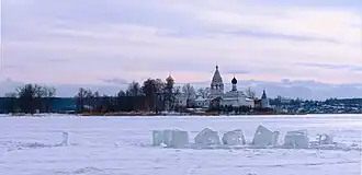 Le monastère est installé sur un îlot du lac près de Vorsma, ce qui explique son nom de monastère de l'Île-du-Lac. Du côté oriental, la rivière Doskinskaïa se jette dans le lac, à l'ouest, la rivière Kichma et au sud et au nord, le monastère est bordé par le lac de Vorsma, possédant de nombreux îlots envahis d'arbustes, de roseaux et d'herbe.