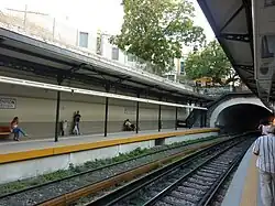 La station de la ligne 3 est entièrement souterraine, elle se situe sous celle de la ligne 1 et comporte un quai central[4].