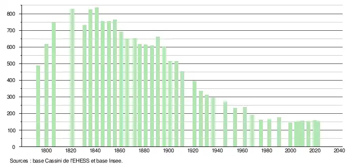 - ↑ Population municipale de référence en vigueur au 1er janvier 2025, millésimée 2022, définie dans les limites territoriales en vigueur au 1er janvier 2024, date de référence statistique : 1er janvier 2022.