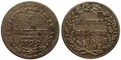 - Revers : 1 Batzen, entouré de feuilles et d'astérisques ;