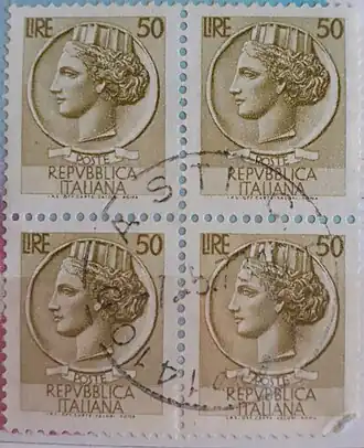 Monnaie syracusaine (en italien : Siracusana ou Italia turrita) est le nom donné à une série de timbres d'usage courant émise de 1953 à 1977 en Italie.