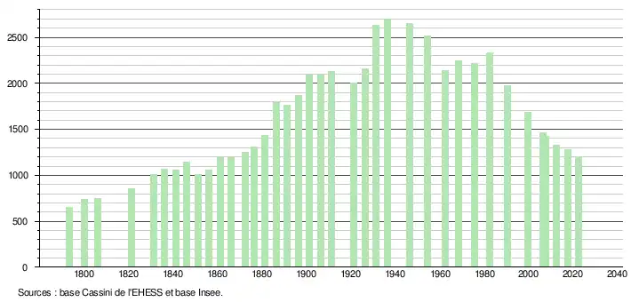 - ↑ Fiches Insee - Populations de référence de la commune pour les années 2006, 2007, 2008, 2009, 2010, 2011, 2012, 2013, 2014, 2015, 2016, 2017, 2018, 2019, 2020, 2021 et 2022.