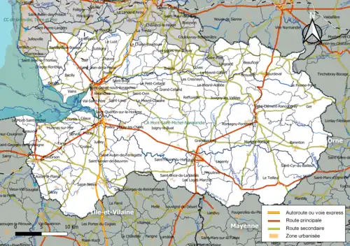 Située dans le sud du département de la Manche, la communauté d'agglomération Mont-Saint-Michel-Normandie regroupe 95 communes et s'étend sur 1 543,9 km2[4].