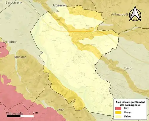 Les communes limitrophes sont Lacq (d), Abidos, Argagnon, Arthez-de-Béarn, Lacq, Lagor et Maslacq.