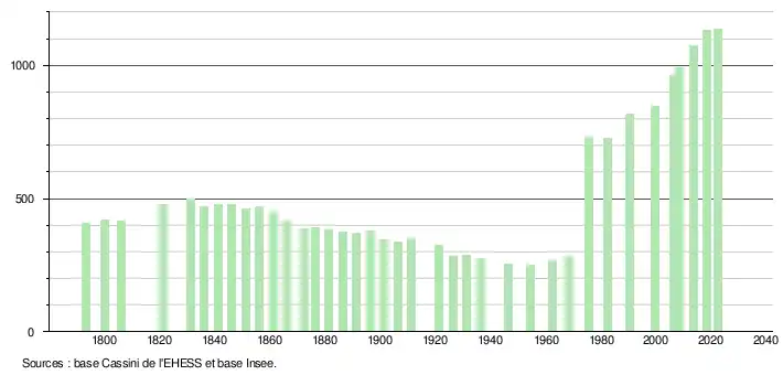 - ↑ Fiches Insee - Populations de référence de la commune pour les années 2006, 2007, 2008, 2009, 2010, 2011, 2012, 2013, 2014, 2015, 2016, 2017, 2018, 2019, 2020, 2021 et 2022.