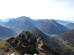 Vue du mont Lachat depuis le sud par-delà Thônes. | |||