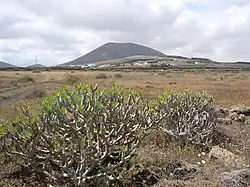 Vue de la Montaña Tamia depuis le village Tao vers Teguise. | |||