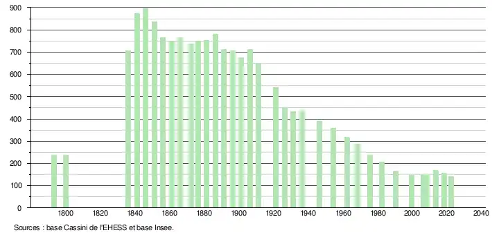 - ↑ Population municipale de référence en vigueur au 1er janvier 2025, millésimée 2022, définie dans les limites territoriales en vigueur au 1er janvier 2024, date de référence statistique : 1er janvier 2022.