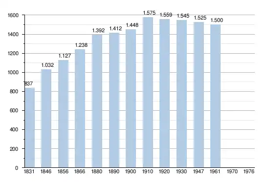 - Sources : INS, Rem. : 1831 jusqu'en 1970 = recensements, 1976= nombre d'habitants au 31 décembre[2].