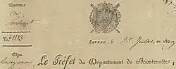 | 4 juillet 1805 | 1806 | Hugues Nardon | Préfet de Maine-et-Loire | Passe à la préfecture du Taro |