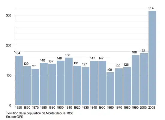 Selon l'Office fédéral de la statistique, Montet possède 532 habitants en 2023[3]. Sa densité de population atteint 242 hab./km².