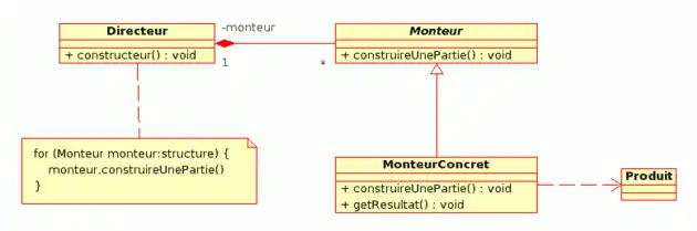 Un monteur (builder) est un patron de conception utilisé en programmation pour la création d'objets complexes à partir d'un objet source. L'objet source peut consister en une variété de parties contribuant individuellement à la création de chaque objet complet grâce à un ensemble d'appels à l'interface commune de la classe abstraite Monteur.