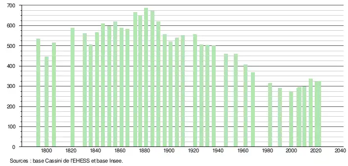 (Sources : Ldh/EHESS/Cassini jusqu'en 1999[22] puis Insee à partir de 2006[23].)
