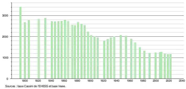 - ↑ Population municipale de référence en vigueur au 1er janvier 2025, millésimée 2022, définie dans les limites territoriales en vigueur au 1er janvier 2024, date de référence statistique : 1er janvier 2022.