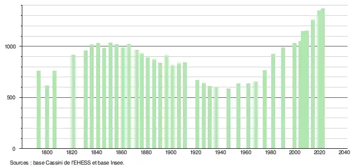 - ↑ Fiches Insee - Populations de référence de la commune pour les années 2006, 2007, 2008, 2009, 2010, 2011, 2012, 2013, 2014, 2015, 2016, 2017, 2018, 2019, 2020, 2021 et 2022.