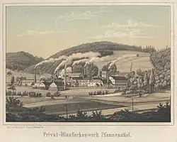 La découverte de la teinture au bleu de cobalt, au début du XVIe siècle, marqua un regain d'activité pour les mines du Schneeberg, puis celles d'Annaberg, du Marienberg et, à un degré moindre, de quelques puits côté Bohême. Longtemps, l'élaboration du pigment tiré du minerai de cobalt fut gardé secrète : ce pigment demeura un monopole mondial de la région pendant trois siècles. Et pendant un siècle et demi, la mine Weißerden de St. Andreas sur l'Aue fournit exclusivement le kaolin de la manufacture de porcelaine en Misnie. En vertu d'un décret du prince électeur, son exportation était punie des peines les plus graves.