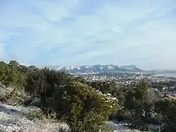 L'hiver et, plus rarement au printemps et à l'automne, lors de journées très froides et pluvieuses sur le littoral, il est possible que les Monts toulonnais soient légèrement ou fortement recouverts de neige, généralement au moins une fois par an. Cependant le climat est très variable aux sommets.